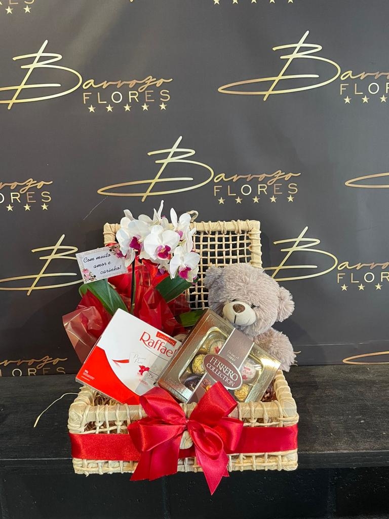 Orquídea na Caixa Box com Pelúcia e Balão bubble
