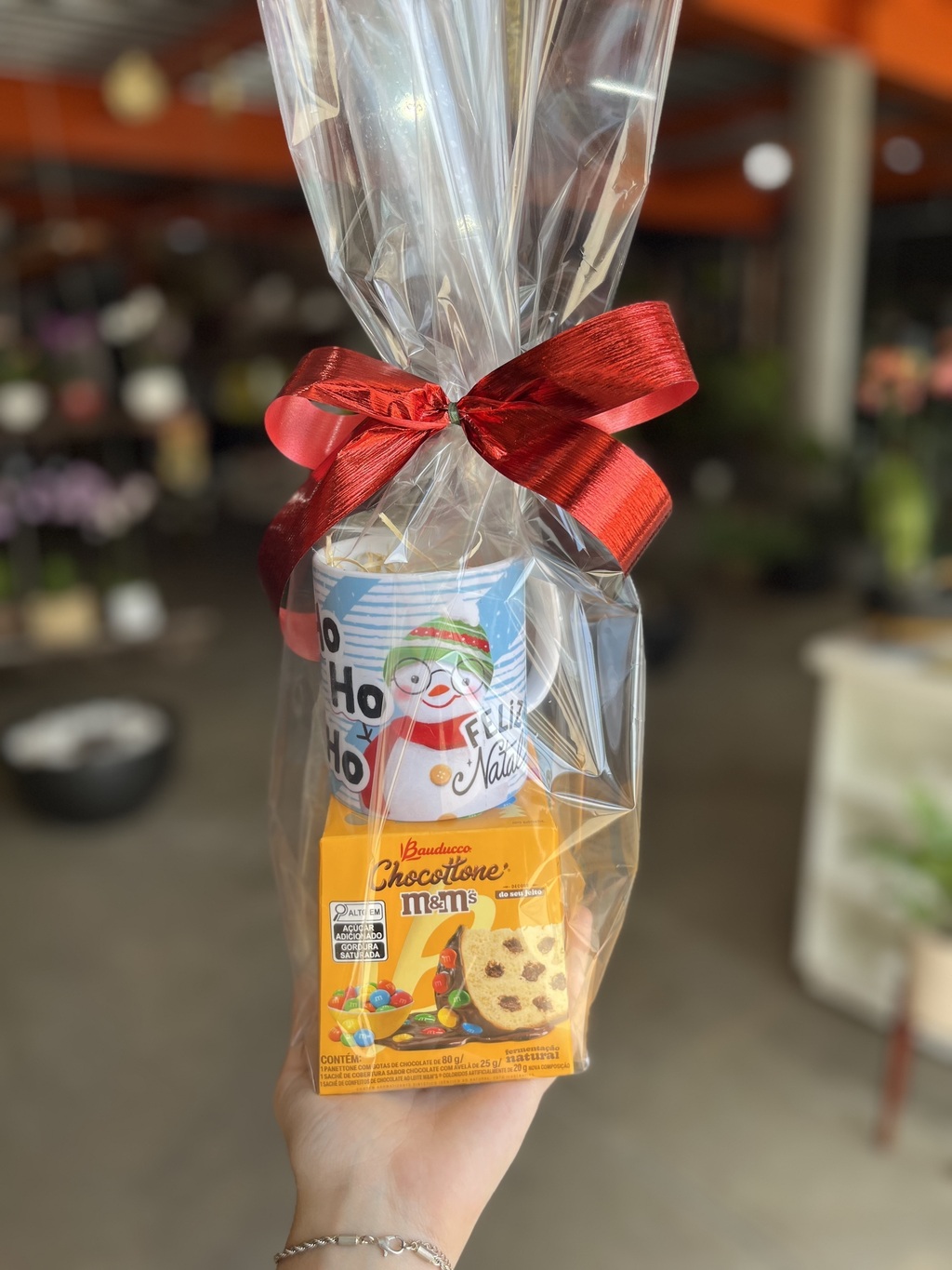 Surpreenda seus amigos e familiares neste Natal com o Mimo de Natal com Caneca e Mini Panetone! Uma combinação deliciosa que traz um toque especial às suas celebrações festivas.